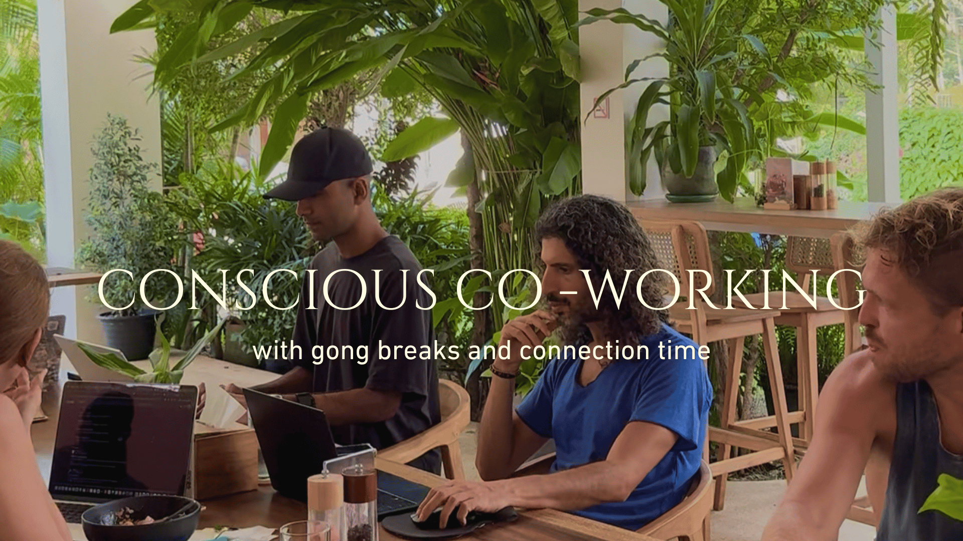 Immerse yourself in a mindful co-working experience, blending productivity with moments of connection, sound healing with yummy healthy food!
