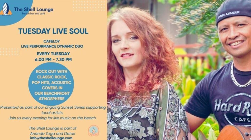 Get ready to unwind with the talented duo Cat & Loy as they bring their soulful sounds to our beachside paradise. Picture this: ocean breeze in your hair, waves gently lapping the shore, and beautiful melodies filling the air as the sun sets over Koh Phangan.