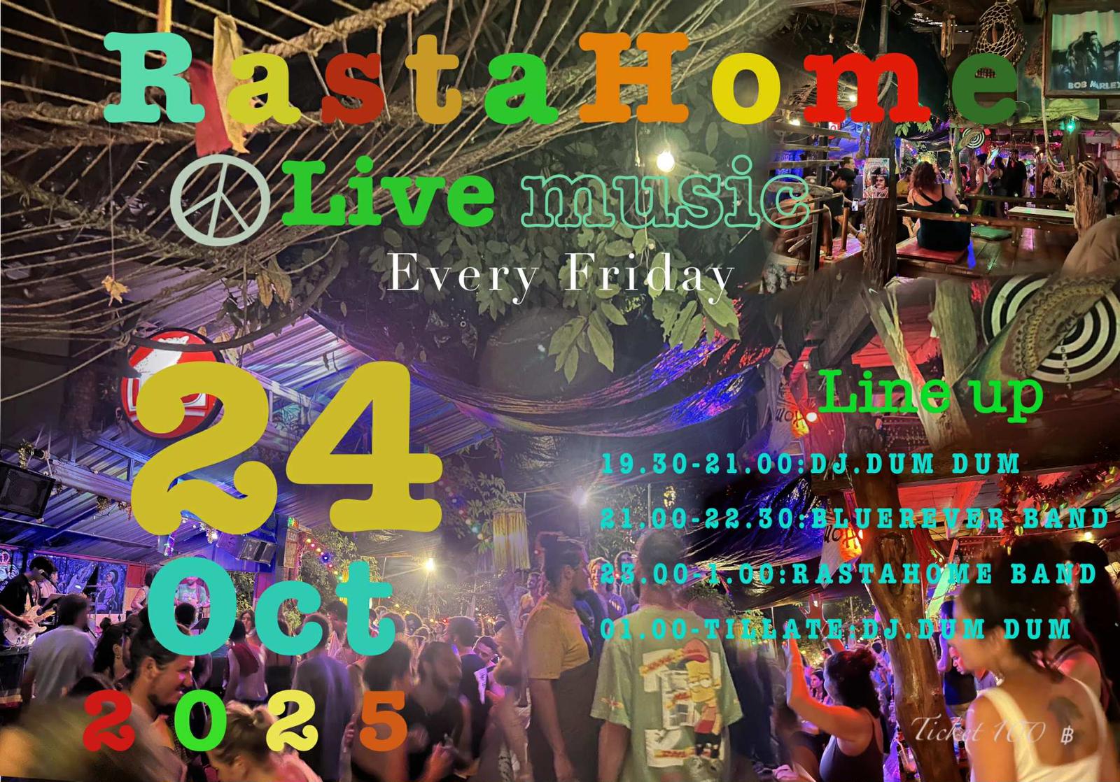 Feel the island rhythm this Friday at Rasta Home! Join the Rasta Home family for a night of full-band reggae, DJ sets, BBQ, homemade treats, and pure good vibes in Haad Yao.