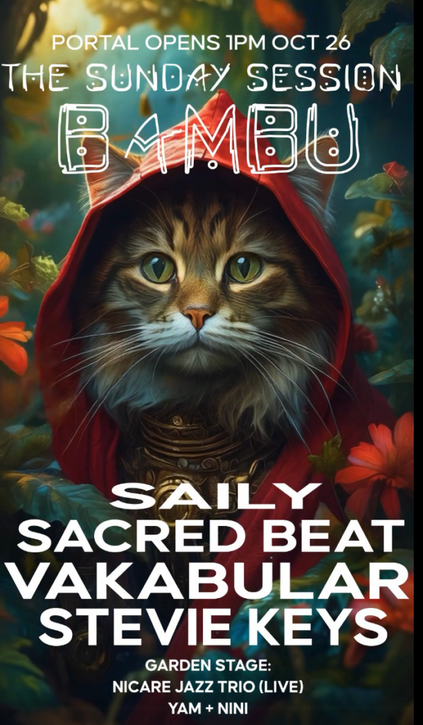 Step into a realm of fairytale magic at the last Sunday Session of the season! Celebrate freedom, vitality, and self-expression at the huts, with a Dark Fairytales theme. Break out your riding hoods, wizard hats, and magical cloaks. Inside, enjoy mystical grooves from musical magicians Saily, Sacred Beat, Vakabular, and Stevie Keys. Outside, under the sacred coconut grove, the Garden Stage will feature a live acoustic set from Nicare Jazz Trio at sunset and diverse DJ sets from Yam and Nini during the witching hours. 🔥 Experience an array of fire and flow artists performing throughout the event, backdropped by mind-blowing visual artistry and projection shows from NI X NI studios. 💝